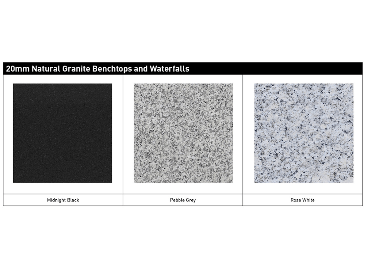 Weber’s natural granite benchtops and waterfalls (the vertical granite from the end of the benchtop to the floor level) add a timeless elegance to your outdoor kitchen. The contemporary 20 mm natural granite is perfect for outdoor use; long lasting and resistant to staining, scratching and heat damage when treated with care. Cut and polished in the factory to maintain the highest standard of quality control, our range of natural granite has been chosen to ensure a consistently beautiful product.