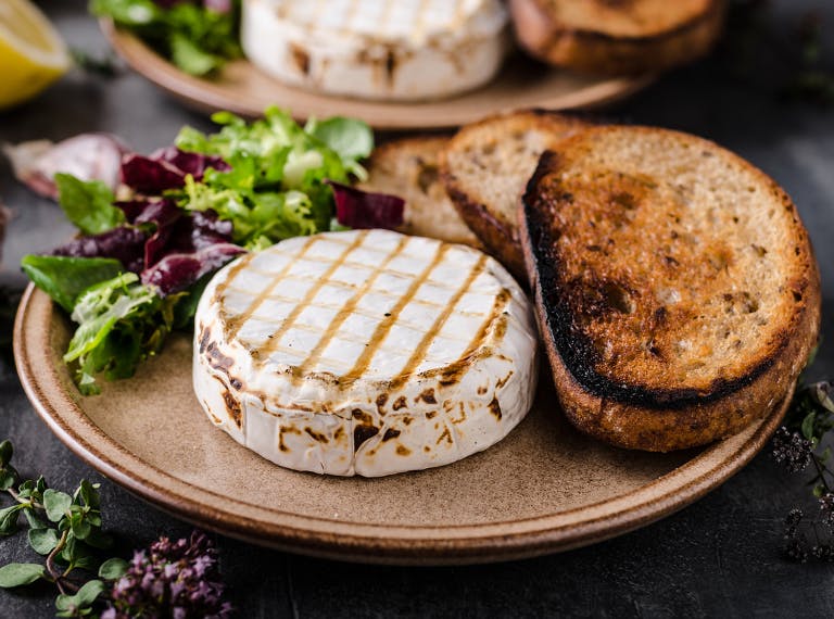Weichkäse: Blauschimmelkäse, Camembert oder Brie enthalten mehr Wasser und sind generell flüssiger als andere Käsesorten. Werden sie direkter Hitze ausgesetzt, zerlaufen sie sofort. Da Weichkäse oft einen auffälligen Eigengeschmack hat, eignet er sich gut zum Überbacken von Fisch oder Fleisch. Um den schnell zerfließenden Grillkäse richtig zu grillen, sollte er erst hinzugegeben werden, wenn das Grillgut bereits fast fertig ist. Alternativ kannst du den Weichkäse mit Gemüse im Grillpäckchen zubereiten. So verfeinert er die Beilage.