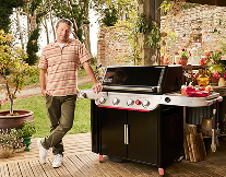 2. Braten aus der Marinade nehmen (Marinade wird noch gebraucht), mit Salz und Pfeffer würzen, in den Bratenkorb legen und indirekt auf dem Grill platzieren. Den Braten grillen bis eine Kerntemperatur von 70°C erreicht ist.
