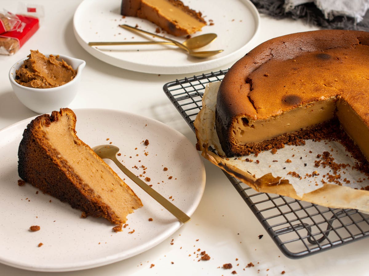 The menu ends with a twist on a Spanish-inspired Basque cheesecake, made with a base of spiced gingerbread shortcrust biscuits from Belgium and the Netherlands. It’s bitter-sweet and crispy on the outside, and soft and creamy on the inside – and just plain old delicious.
