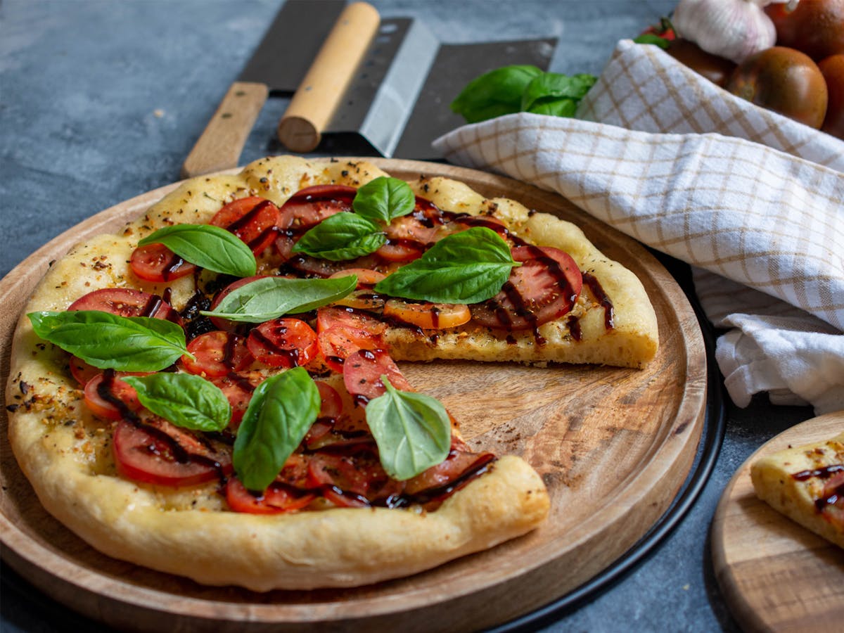 Our canape is a bruschetta pizza, originating from Italy, and features a hand-made pizza dough base, barbecue-roasted with garlic oil and topped with fresh tomato and basil. It’s a perfect starting dish for a meal with friends and family or makes a light and tasty weekend brunch.