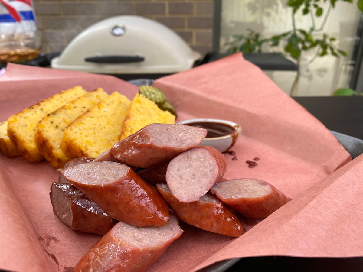 Looking for a way to mix up the simple sausage? Try smoking the sausages on the barbecue over indirect heat, they will be deliciously smoky, tender and succulent.