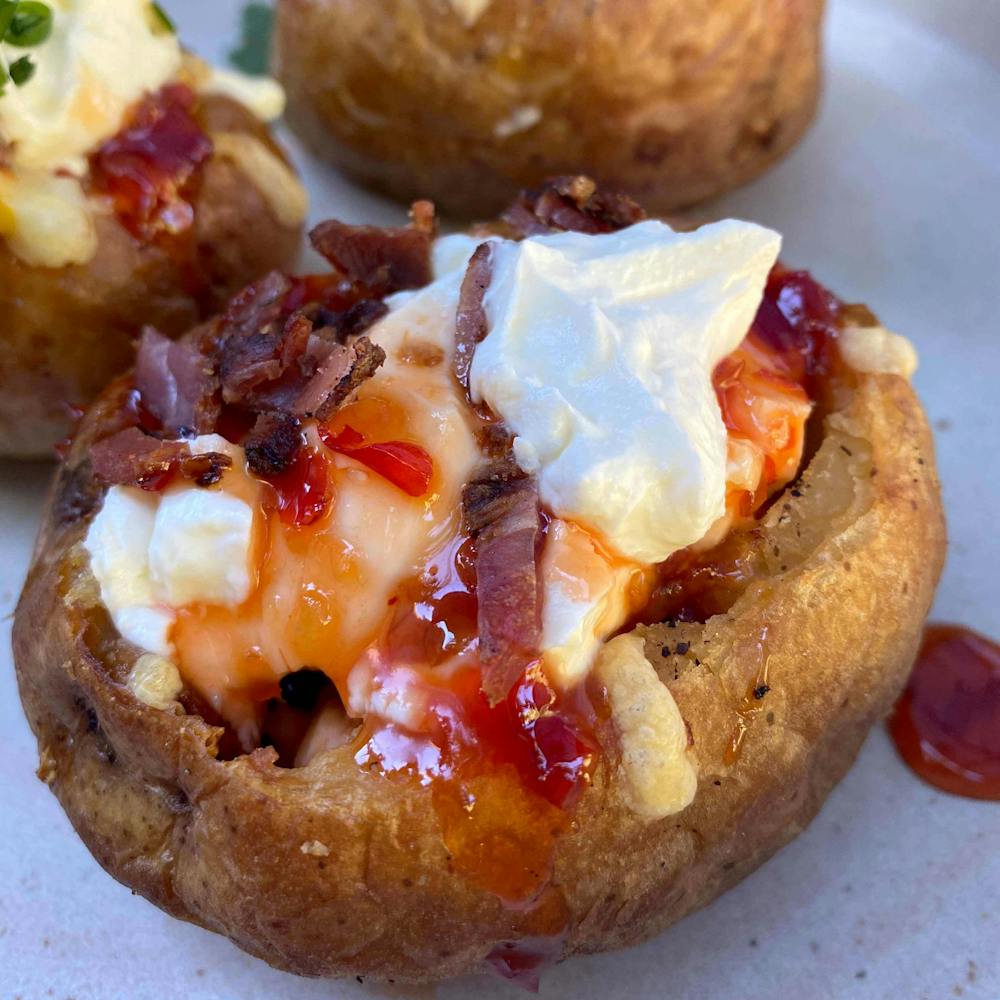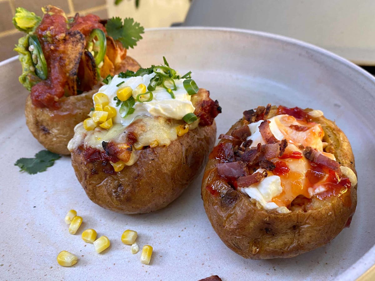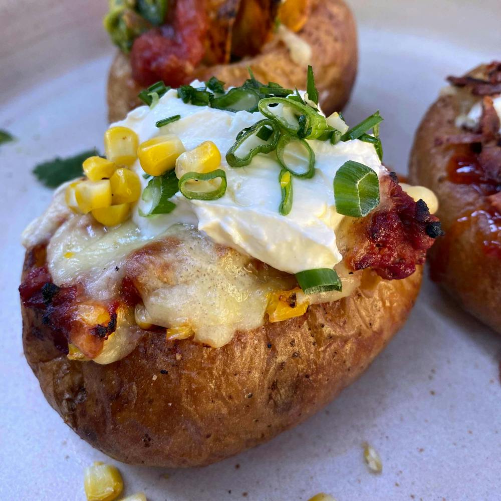 These are not only a delicious comfort food, they are also a great excuse to use up any leftovers or bits and pieces from your fridge or pantry. This recipe is completely adaptable. Imagine all the barbecued meats you could load up a potato with!