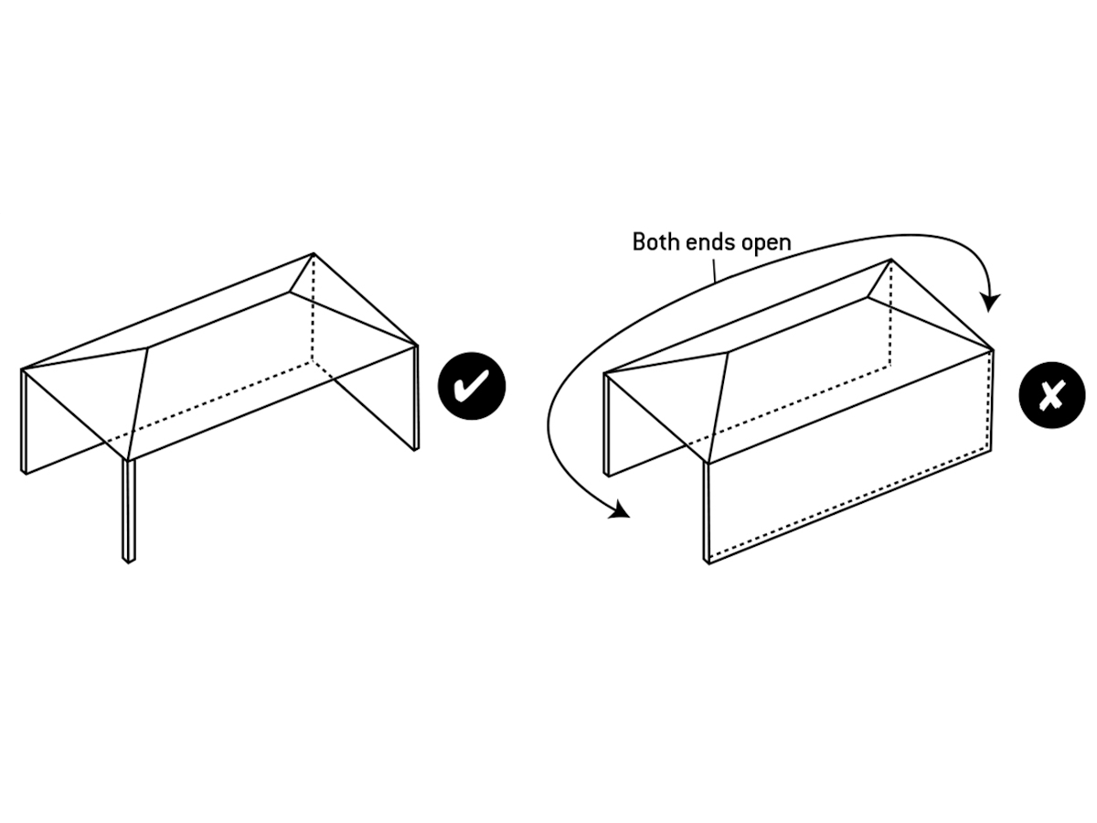 - Within a partial enclosure that includes an overhead cover and no more than two walls permanently open and unrestricted, equal to at least 50% of the total wall area (refer to diagram 2)
