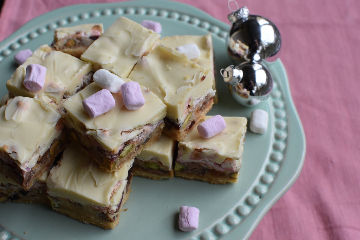 Follow this link for our full recipe White Christmas Rocky Road Slice