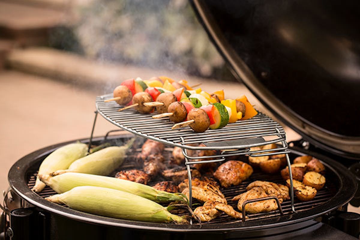Firstly, to give you ultimate control over the charcoal fire, we created an insulated double walled kettle, not out of ceramics or clay that can crack or break, but out of Weber’s legendary gleaming porcelain enamelled steel. Exceptionally good looking, it’s easy to clean and won’t rust. What the insulated double walled construction – featuring an outer diameter near 50mm larger than the inner – gives you, is incredible efficiency allowing you to grill, roast, bake or smoke with ease. You truly appreciate the true genius of this ground-breaking barbecue when it is cooking low and slow for long cooking times.