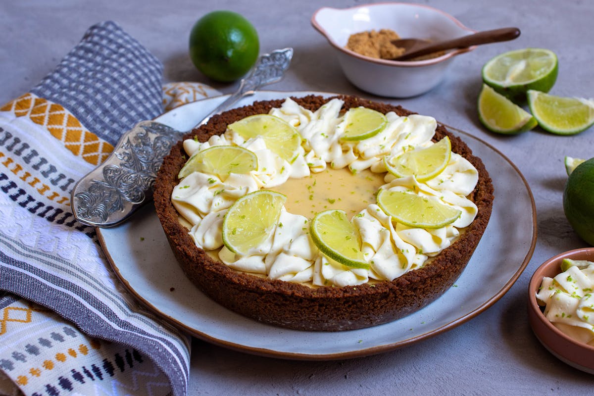 This zesty, creamy pie gets a subtle smoky flavour from a barbecued crust, perfectly balancing the sweet and tangy notes. Topped with whipped cream and mascarpone, it’s the perfect way to finish off a long lunch or dinner party.