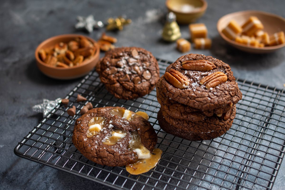 Chocolate lovers will swoon over these decadent cookies, a cross between chewy brownies and crisp cookies. Cooked to perfection, the addition of flaky salt brings out the deep chocolate flavours, making them an ideal post-dinner indulgence.