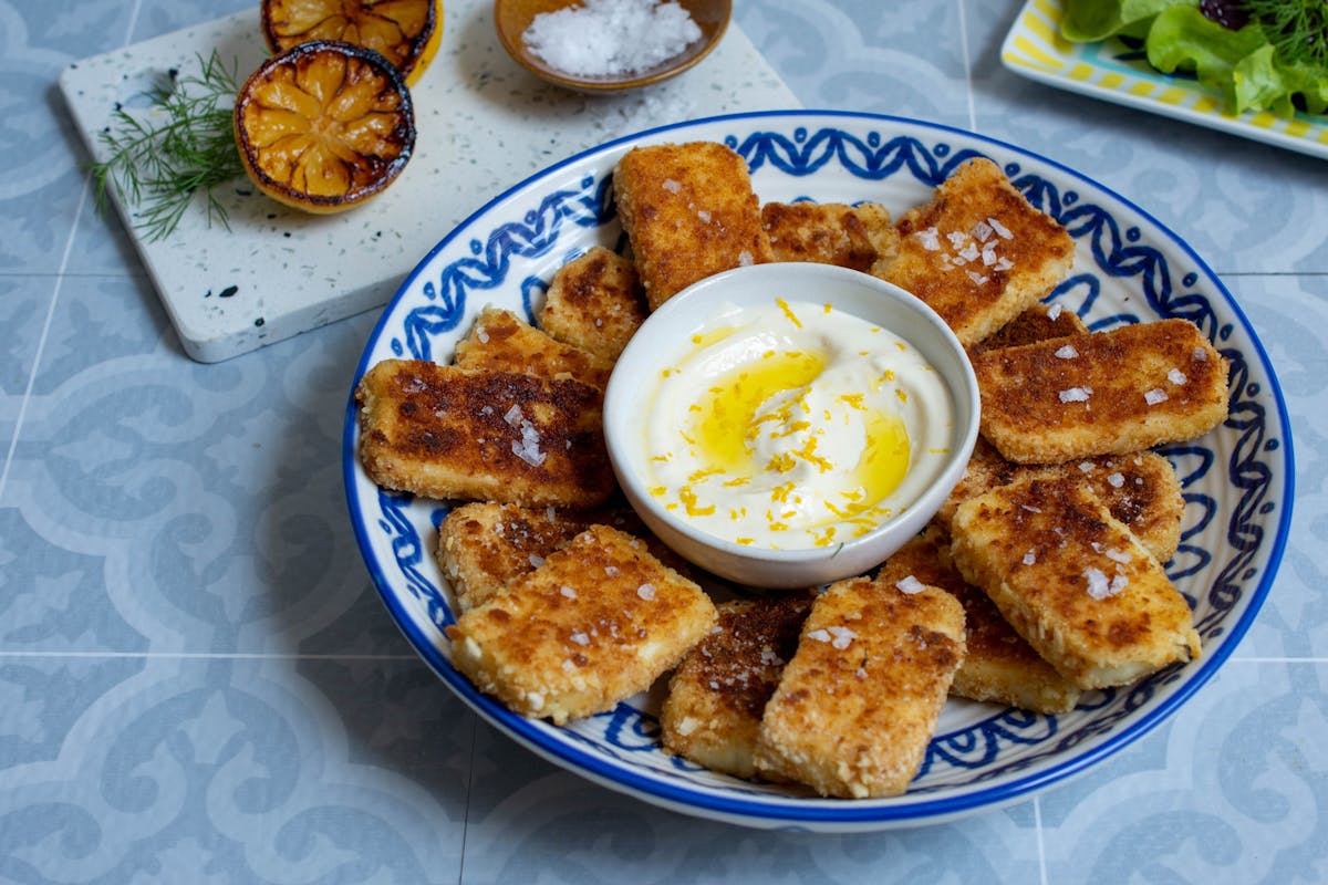 1. Jatz-Crumbed Halloumi with Lemony Mayo