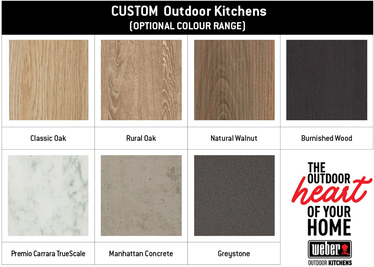 To reduce long lead times typical to traditional custom designed outdoor kitchens, we’ve worked with our suppliers to offer a range of standard modules, appliances and finish choices that we keep in stock and ready to go. We call it the Weber Select range.