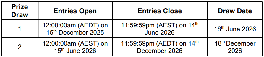 2025 and ends at 11:59:59pm (AEDT) on 14th December 2026 (“Competition Period”).