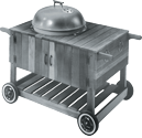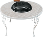 This novelty grill appealed to the entertainer who wanted to prepare barbecued food and serve it to their guests sitting at a bar-height serving area.