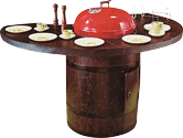 Featured a low table to sit around and grill hors d’oeuvres or small cuts of meat while enjoying the company of friends - a new way to entertain before the main meal was served.