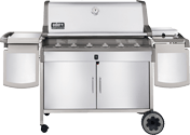 The upgraded Summit® gas grill series offered heavy-duty components, stainless steel finishes and the largest grilling area of any gas grill on the market. Side burners, an infrared rotisserie burner, smoker burner, and larger work surfaces appealed to grilling enthusiasts.