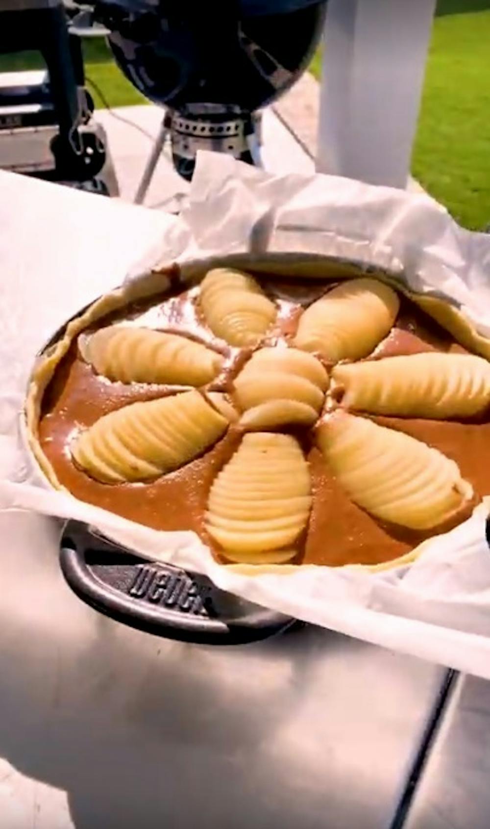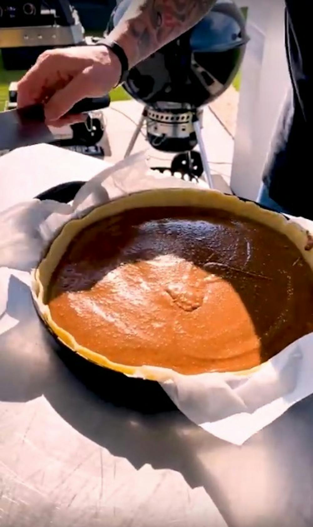 En quelques minutes, votre tarte sera prête. Il vous suffit de commencer par faire préchauffer votre barbecue, d'y déposer le beurre et le chocolat, puis de laisser fondre.