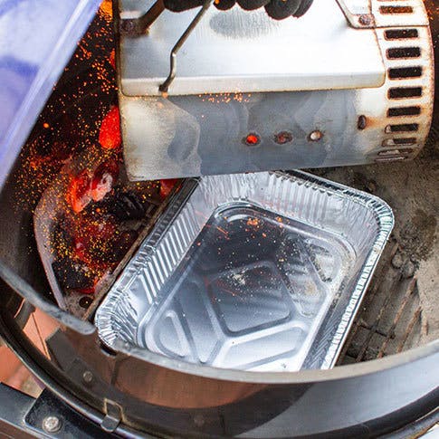 U kunt bijvoorbeeld Weber Char-Basket houtskoolhouders gebruiken om de briketten op hun plaats te houden en een aluminium lekbakje om sappen op te vangen.