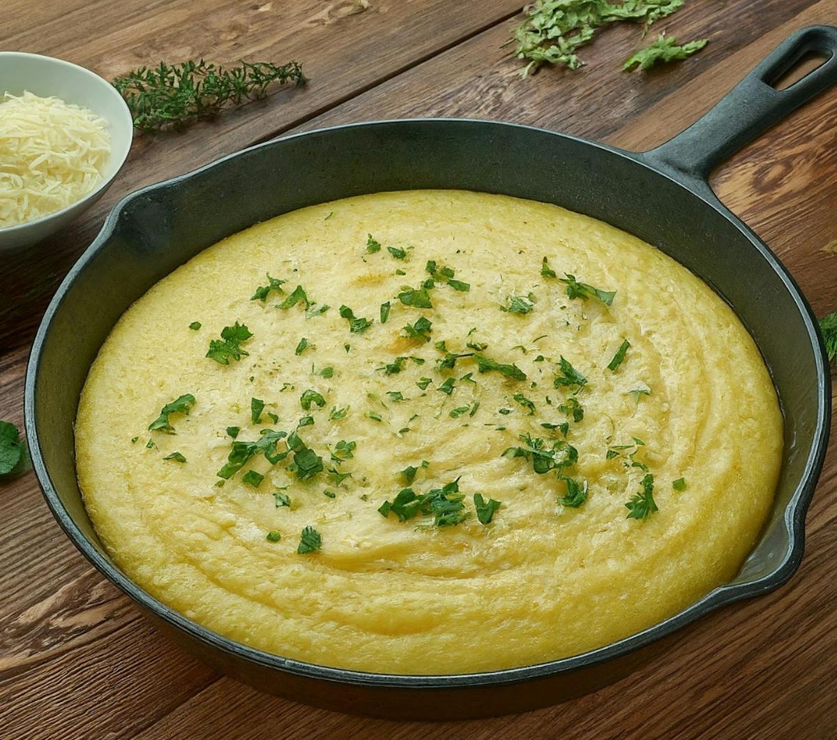 - Add the cheese, milk, butter, parsley, rosemary, thyme, and pepper, and stir until the butter and cheese melt. Transfer the polenta to a bowl and serve.