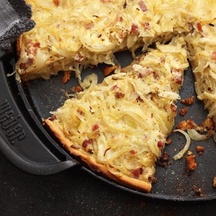 Im Herbst, wenn frischer Federweißer die Weinlese ankündigt, ist die beste Zeit für Zwiebelkuchen. Der fruchtig-süße Wein und der deftige Kuchen sind ein eingespieltes Team – insbesondere in Süddeutschland und dem Elsass. Natürlich kannst Du die herzhafte Spezialität das ganze Jahr über genießen, besonders gut schmeckt frischer Zwiebelkuchen vom Grill.