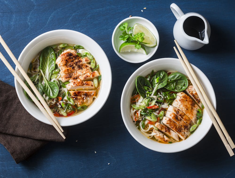 Zum Auftakt servierst du eine Suppe aus dem Wok. Unser Vorschlag: eine japanische Ramen.