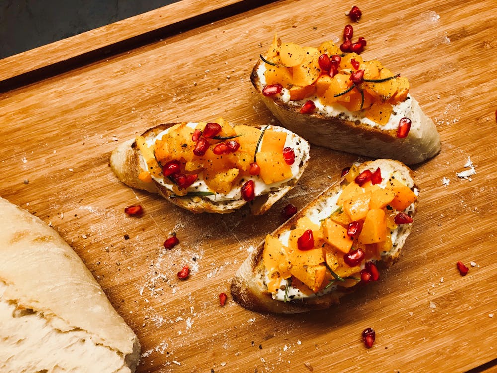 Im Italienurlaub genießt du den Klassiker mit Tomaten und Basilikum, zu Hause machst du dir im Herbst ein Kürbis-Bruschetta mit Rosmarin. Dazu würfelst du einen Hokkaido-Kürbis, hackst Knoblauch und frischen Rosmarin. Alles mit Rapsöl sowie Pfeffer und Salz vermengen und in einer Pfanne auf dem heißen Grill garen. Parallel die Ciabatta-Scheiben kurz von beiden Seiten anrösten. Beim Anrichten Schmand und Granatapfelkerne nicht vergessen: Sie sorgen für Frische und runden die herbstliche Vorspeise ab.