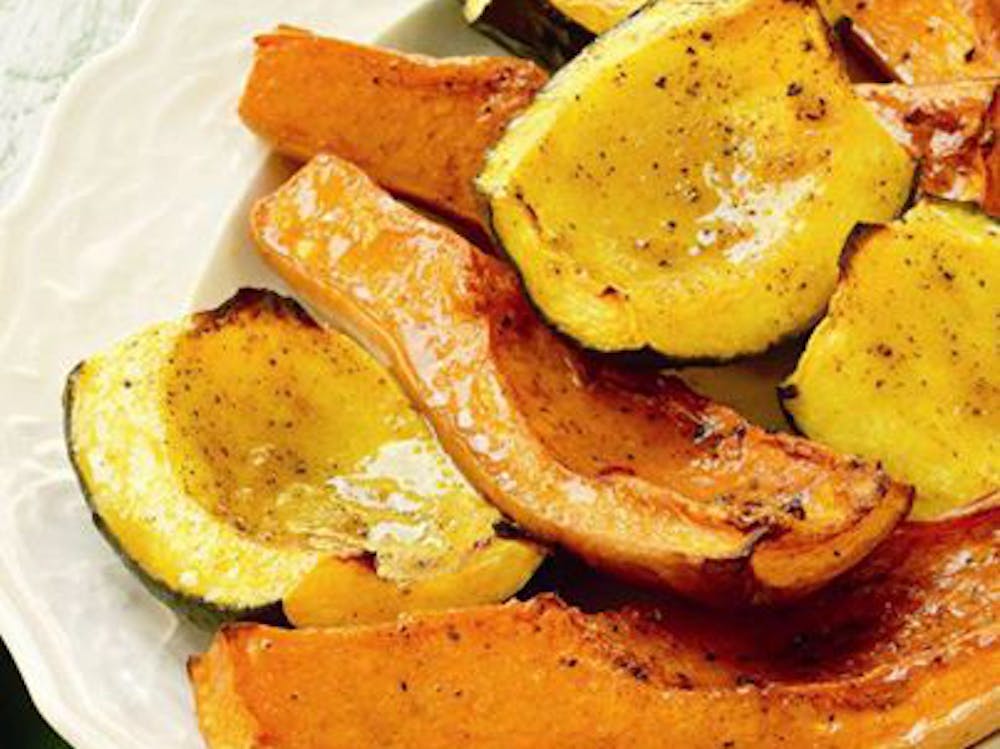 Lasse beim Rezept für Kürbis mit Honig-Curry-Glasur Pfeffer, Salz und Olivenöl weg und nimm stattdessen neutraleres Rapsöl. Koche in einem Topf aus Butter, Honig, Apfelessig oder Apfelsaft und nach Belieben etwas Currypulver oder Chili eine Glasur. Diese pinselst du immer wieder über die Stücke vom Butternut-Kürbis, die auf dem Rost grillen. Zusammen mit griechischem Joghurt und gehackten Nüssen entsteht ein Nachtisch, der nach Nachschlag ruft.