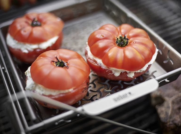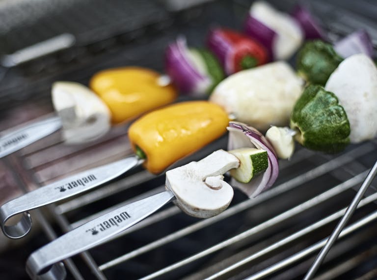 - Vegetarische Zutaten verbrennen schneller als Fleisch. Deshalb Gemüse, Tofu und Käse auf dem Rost nicht direkt über das Feuer legen, sondern am Rand indirekt grillen. Alternativ die Hitze nicht so hochfahren.