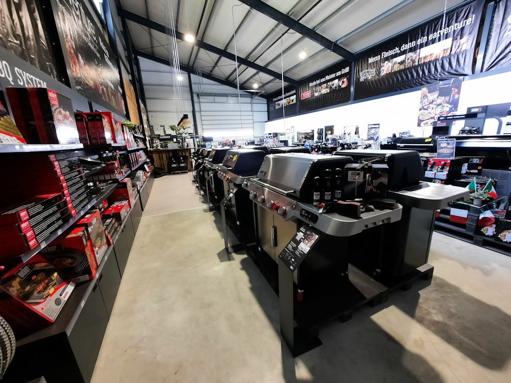 Unser Store bietet Dir auf über 450 m² Alles, was das Herz höherschlagen lässt. Unsere Mitarbeiter sind geschulte Fachleute, die sich mit unseren Produkten und deren Möglichkeiten bestens auskennen. Sie sind in der Lage, unsere Kunden umfassend zu beraten und tatkräftig dabei zu unterstützen, eine optimale Lösung für Dein perfektes Grillergebnis zu finden. Neben dem umfangreichen Service-Angebot bieten wir künftig vielseitige Grillkurse in der Weber Grill Academy an.