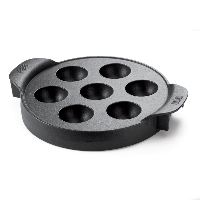 Den lækre æbleskivepande af støbejern kan udover æbleskiver også anvendes til at bage små kager og desserter. Når du sætter æbleskivepanden i GBS-risten bliver støbejernet hurtigt ekstremt varmt, så bagværket får en sprød skorpe – samtidig med at ”brødet” indeni forbliver luftigt og lækkert.