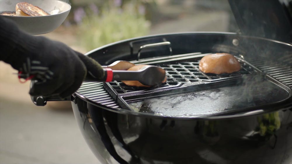 Vi har allerede nævnt vores Gourmet BBQ System grillrist. Med denne robuste rist behøver du ikke vælge mellem grillning og stegning, for du kan lave begge dele på ét og samme tilbehør. Den ene side passer perfekt til grillningen af burgerne, mens den anden side udgør en perfekt stegeflade til baconen, brødet og løget. Den porcelænsemaljerede overflade er yderst nem at rengøre, når måltidet er færdigtilberedt, og du kan tilmed stable de to dele oven på hinanden i forbindelse med opbevaring. Udover grillristen vil vi også anbefale et andet tilbehør, som er uundværligt – vores grillpalet.