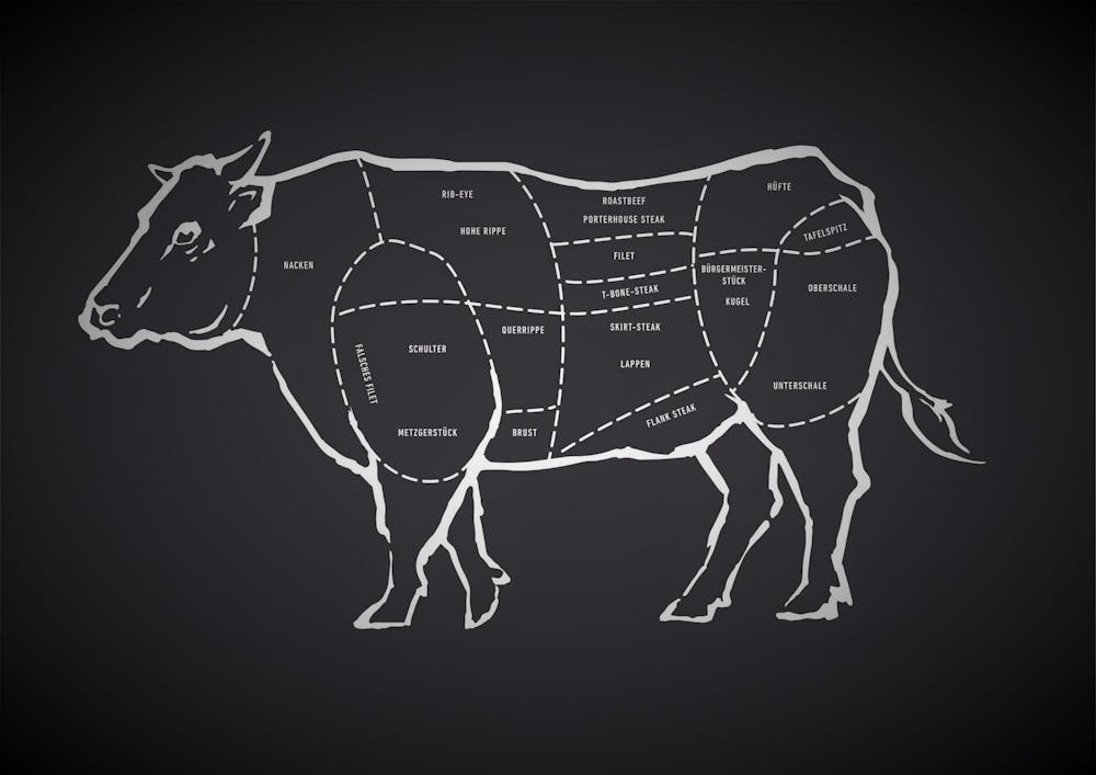 Hver del af koen har sin smag og farve – afhængig af hvor på koen udskæringen er placeret, og hvor meget motion musklen har fået. Den bedste udskæring til burgere er mellemskært oksekød med en dyb rød farve, der stammer fra den del af skulderen, som får mest motion, når koen går på marken. Hakket oksehøjreb er også et godt valg.