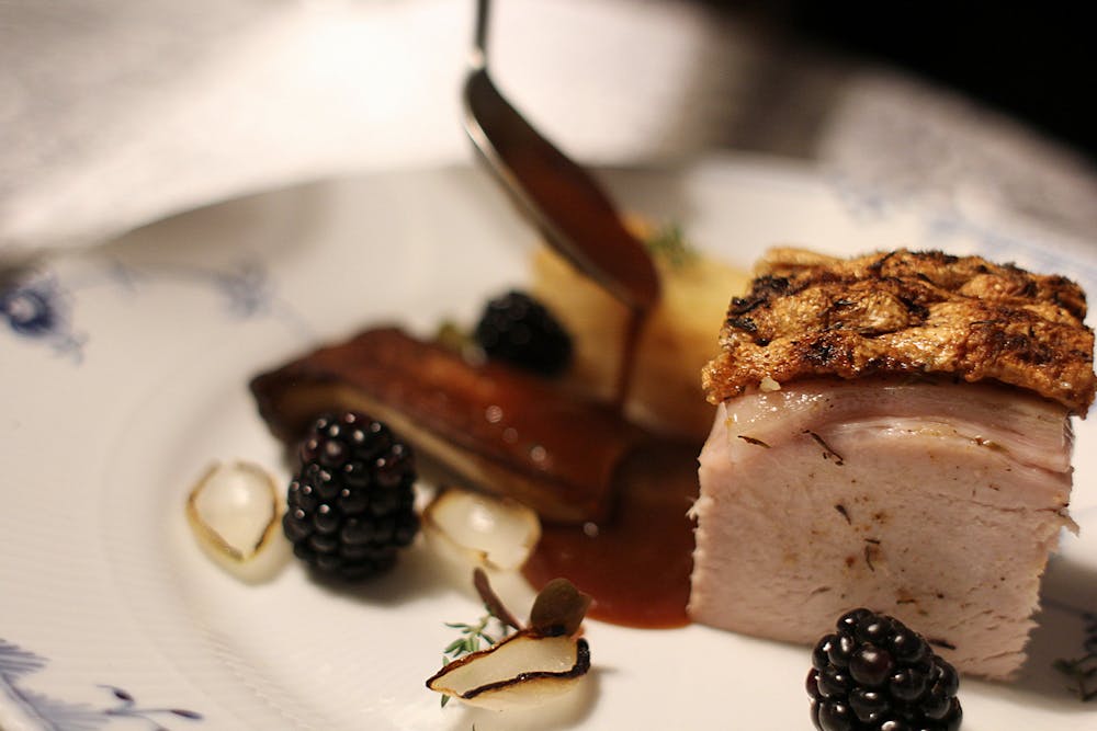 Alt godt kommer til den, der venter – det gælder i hvert fald nytårets hovedret, der består af langtidsstegt flæskesteg på grillen serveret med Pommes Fondant og en fremragende Sauce Bordelaise. Hertil perleløg, brombær og skovsyre, der sikrer en smagsoplevelse udover det sædvanlige.
