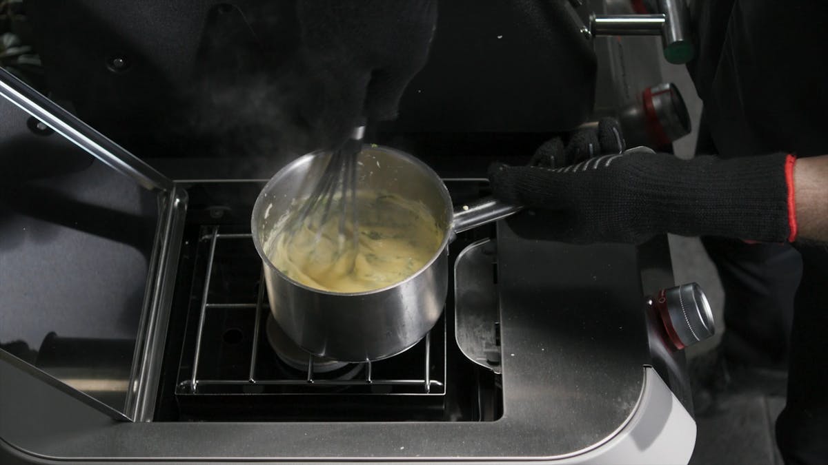 Der var engang, hvor saucer kun kunne tilberedes på komfuret. Hvis man ville servere grillet kød med lækker bearnaisesovs som tilbehør, skulle man i gang med at løbe mellem komfuret i køkkenet og grillen i haven. I dag er der dog heldigvis andre muligheder! Weber Genesis EPX-335 fungerer nemlig som et komplet udekøkken og gør det muligt at koge, stege, grille, wokstege, bage og meget mere på én og samme enhed. Takket være gasgrillens avancerede system og mange smarte typer af tilbehør kan du nemt grille T-bone steaks og samtidig lave en lækker bearnaisesovs uden større dikkedarer.