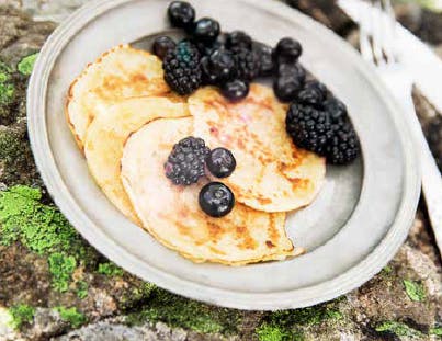 Nyd en brunch i det fri med denne ret. Tag mælk, æg og mel med, bland sammen, og grill i stegepande, indtil de er gyldenbrune. Bærrene – som du måske kan finde i naturen (sørg dog for lige at tjekke, at de kan spises) – kan enten serveres rå eller måske som en kompot lavet på panden.