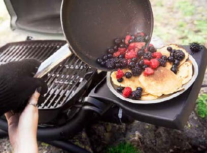 Go-Anywhere-grillen, der fås som både gas- og kulgrill, har et let design, så du kan bære den i håndtaget eller fastgøre den til din cykel. Det giver ekstra plads i rygsækken til alle de andre ting, en campingtur kræver (f.eks. skumfiduser, badetøj og kikkert). Og så er en transportabel grill meget mere miljøvenlig end en engangsgrill. Så der er faktisk ingen grund til, at morgenmaden blot skal bestå af en kedelig myslibar. Duften og varmen fra morgenmaden, der syder og steger på grillen, skaber sammen med solopgangen de perfekte rammer, når I vågner. Med en transportabel grill kan du bare stå op, tænde grillen og spise, uanset hvor turen fører dig hen.