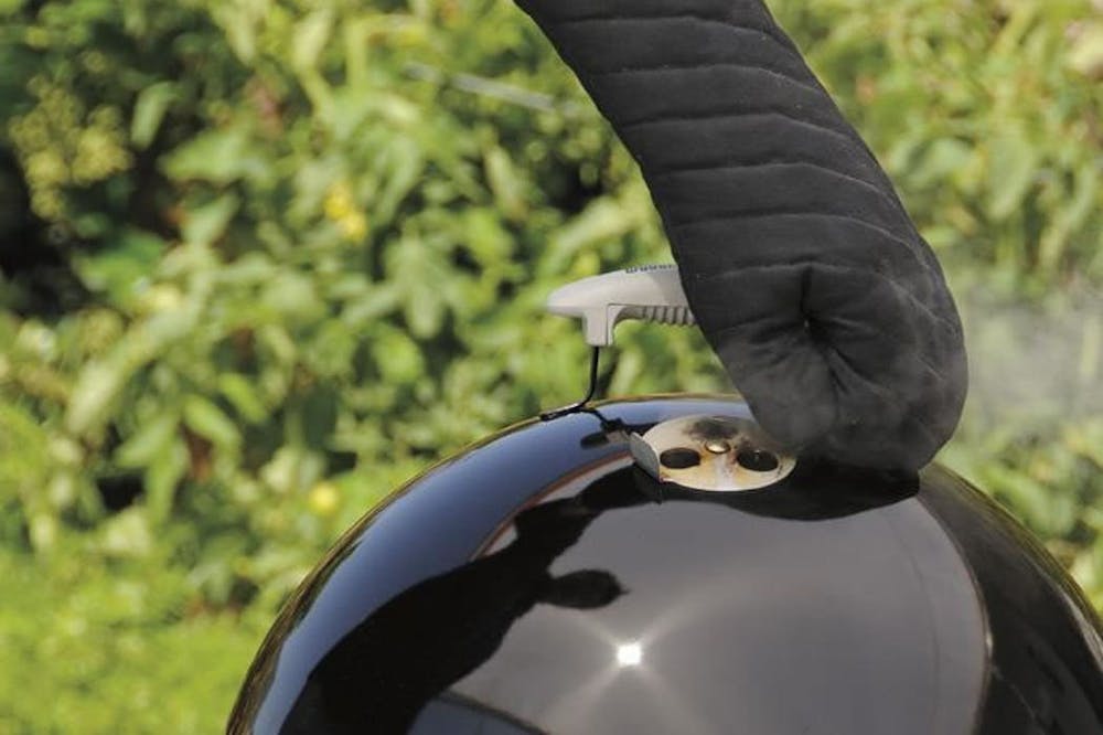 A water smoker allows you to smoke meat at temperatures well below 300°F for many hours. The Weber Smokey Mountain is basically an upright bullet-shaped unit with three sections. The charcoal burns in the bottom section. For smoky barbecue aromas, add a few fist-sized chunks of hardwood to the coals right from the beginning. The meat will absorb the smoke best when it is uncooked.