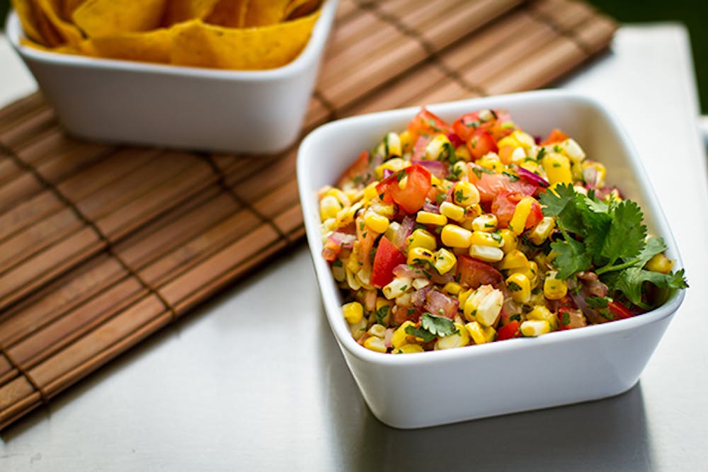 Freshen up your party with a healthy salsa that your friends can enjoy with their grilled meat or even just dig in and dip in with store-bought corn chips. While there are recipes for no-cook, no-grill salsas, what grilling does here is take the edge off the red onions for that natural sweetness, and char the corn for that added smokiness.