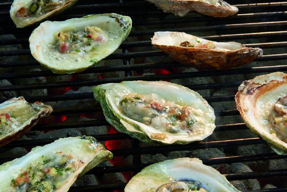 Char-Grilled Oysters with Bacon-Bourbon-Ginger Butter