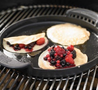 While you’re out there at the grill, why not simply char grill some pineapple, banana or even pear. They can make the most wonderful fillings. If you’re prefer something saucier, a rhubarb compote or Crème de Cassis Stewed Berries provide a mouth-watering topping.