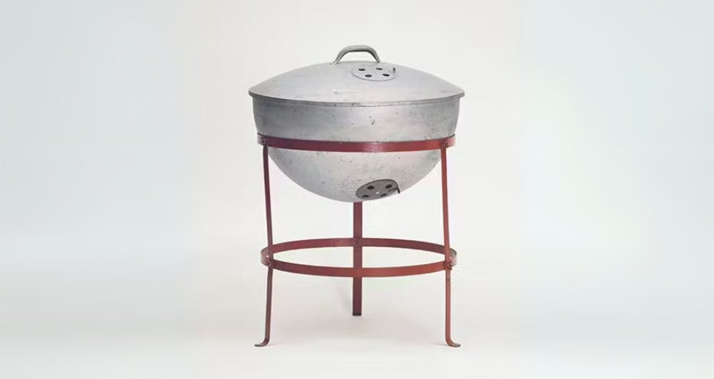 Trova la soluzione osservando una boa di segnalazione metallica, nel corso di una gita in barca a vela. Stephen ha l’idea di trasformare questo segnale di navigazione in un “barbecue a sfera”: lo divide a metà, si serve della parte inferiore come braciere, l’attrezza con tre gambe perché sia stabile, e utilizza la parte superiore come coperchio. Aggiungendo al coperchio un’impugnatura, rivoluziona tutta la gestualità legata al barbecue: ormai è possibile sorvegliare la cottura degli alimenti con l’eleganza di un maître d’hôtel che solleva un coprivivande d’argento…