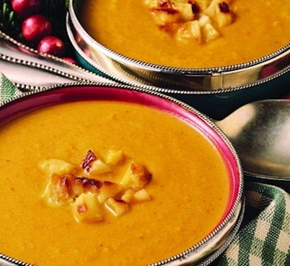 Grill-roasted apple and pumpkin bisque