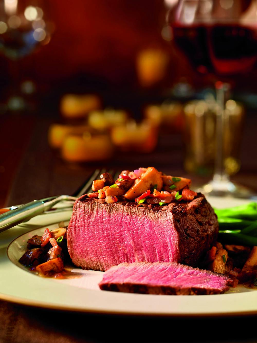 赤ワインソースを添えたジューシーなステーキディッシュ。