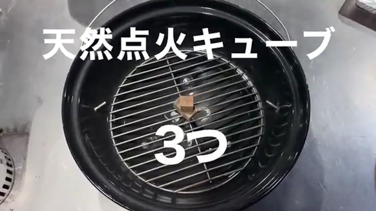以前の記事「炭の点火方法 安心安全で自然な味を実現」でもご紹介しました、植物由来のオーガニックな素材の天然点火キューブを3個使用。
