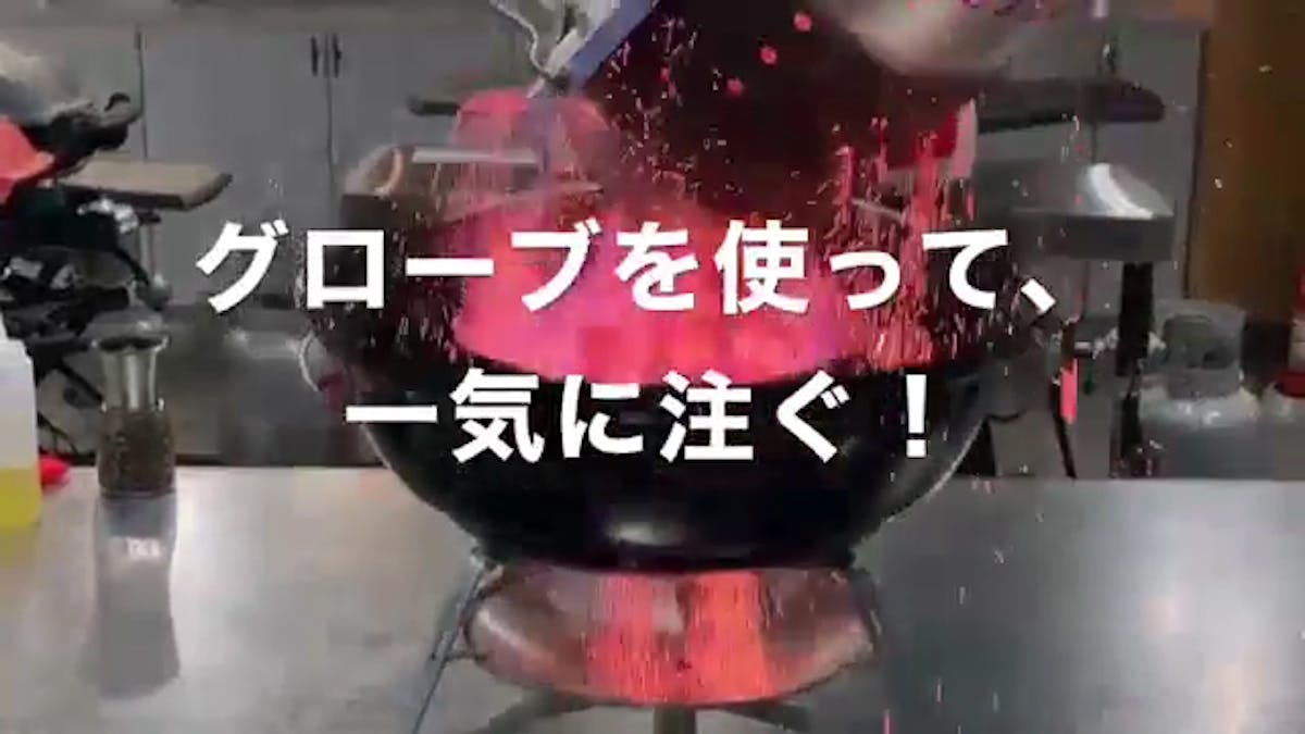 チムニースターターを振って火の粉を散らしてるのはカッコつけてるだけ。