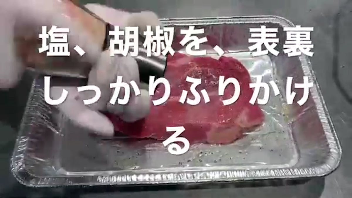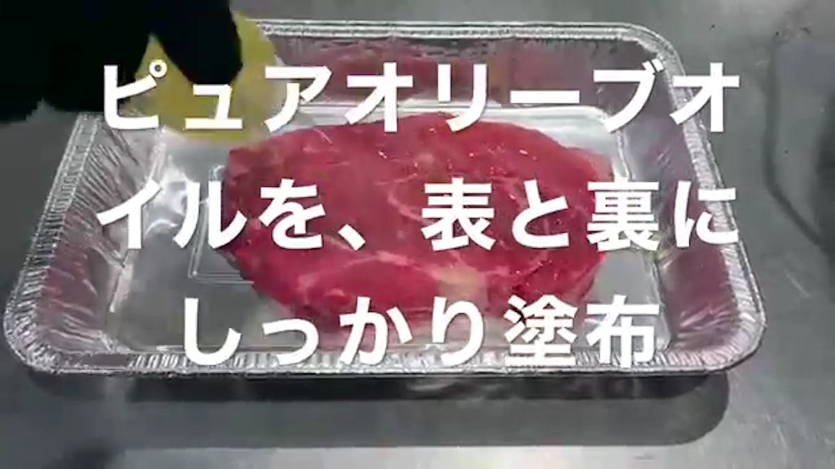 オリーブオイル(ピュアオリーブオイルとも呼ばれるもの)をステーキ肉の表面に塗布します。バージンオイル、エキストラバージンオイルを使う必要はありません。焼くとせっかくの香りなどが飛んでしまうのでピュアオリーブオイルで十分です。