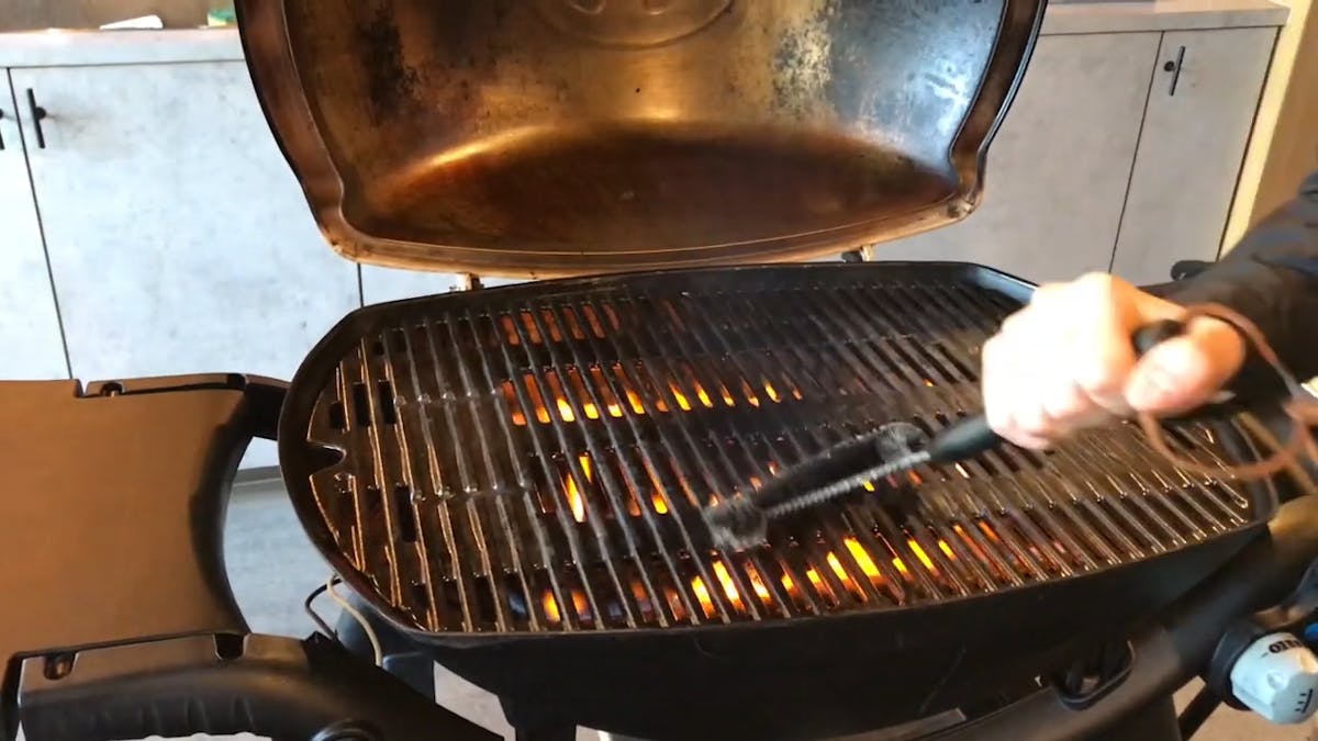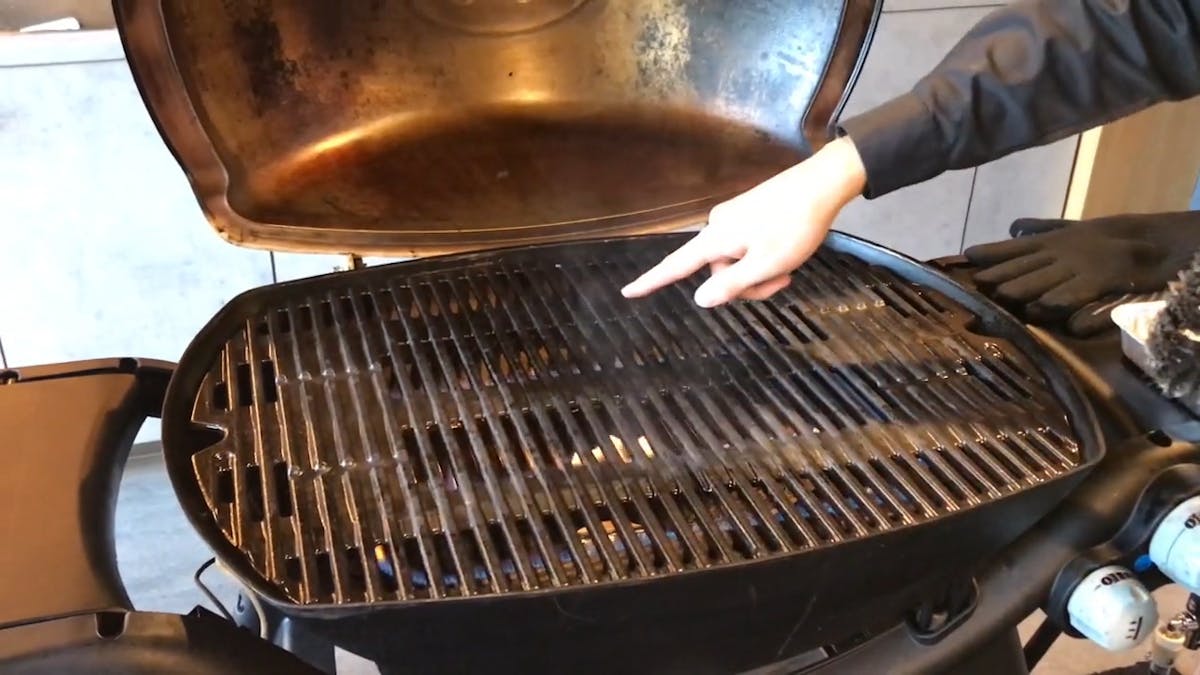 グリルに残ったごみや食材のカスが炭化するまで焼き切ります。