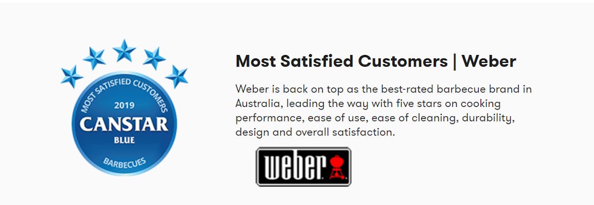 WEBERは、オーストラリアのBBQ市場で2019年度「Canstar Blue Most Satisfied Customers Award」を受賞しています。