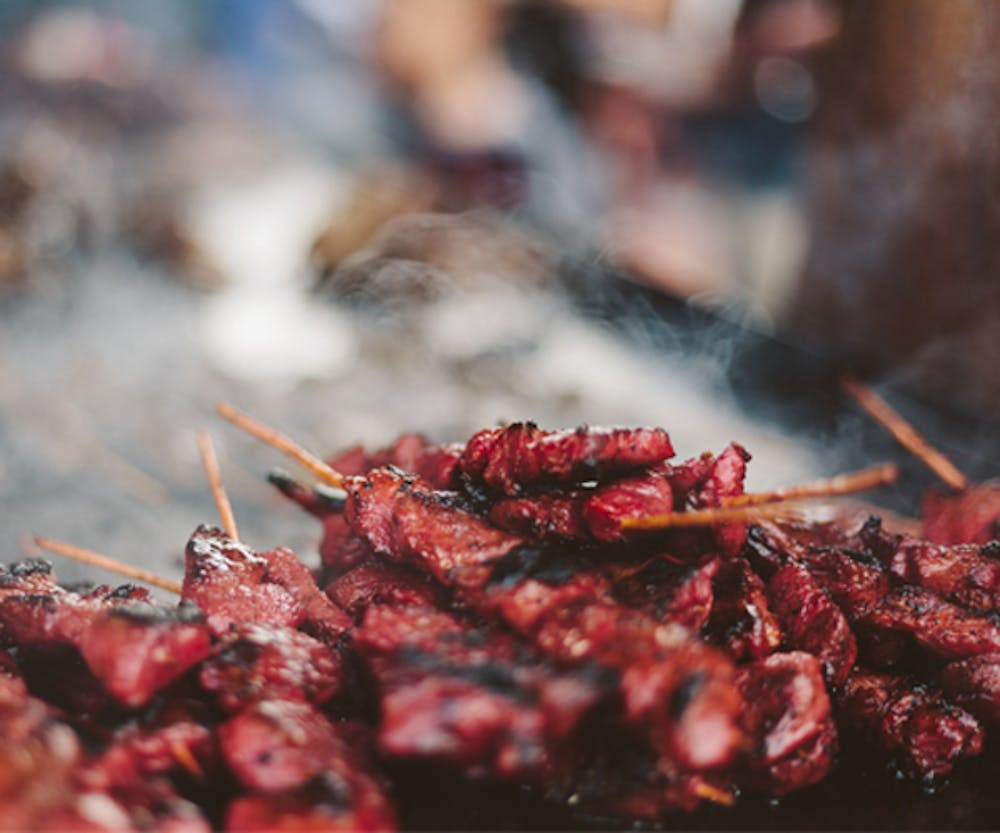 Besides using pantry staples like soy sauce, black pepper, garlic, onion and lemon juice in their marinade, Filipinos also have a national condiment of sorts—banana ketchup. Created during World War II when there was a shortage of tomatoes, the mix of mashed banana, sugar, vinegar and spices is dyed red and bottled to resemble ketchup, and goes well with hotdogs, burgers and fries.