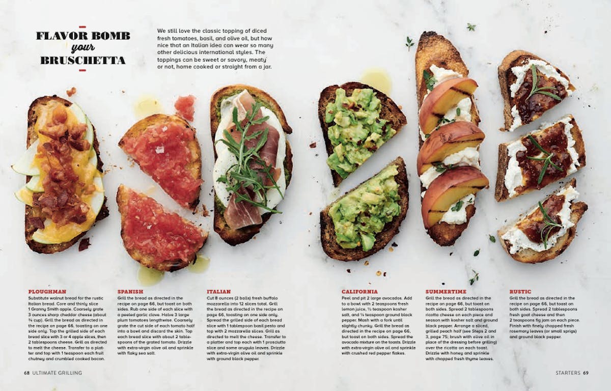 Take, for example, a dish like Grilled Bruschetta with Marinated Peppers. If I were to write a recipe for that for an “ordinary” cookbook, I would try to explain most of the moves to make and maybe show how the recipe looks when it is plated, but a bunch of words and a single photo can’t possibly express all that you can see over the course of an extended series of photographs. Step-by-step images allow you to see how the fire should look, how the peppers should look during roasting and marinating, and how you should finish the recipe on the grill. This new format creates a much more informative experience. It is as if you are viewing the recipe in progress rather than just reading about it.