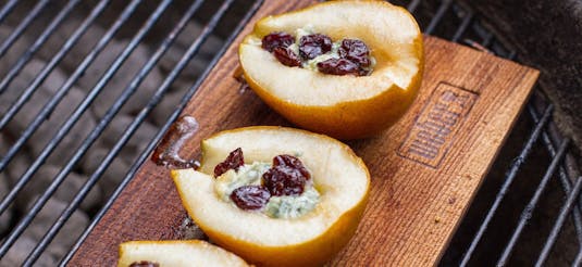 BLUE CHEESE AND CHERRY PLANKED PEARS