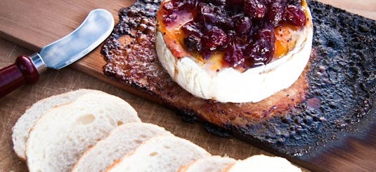CEDAR PLANKED BRIE WITH SMOKED ONION CRANBERRY CHUTNEY